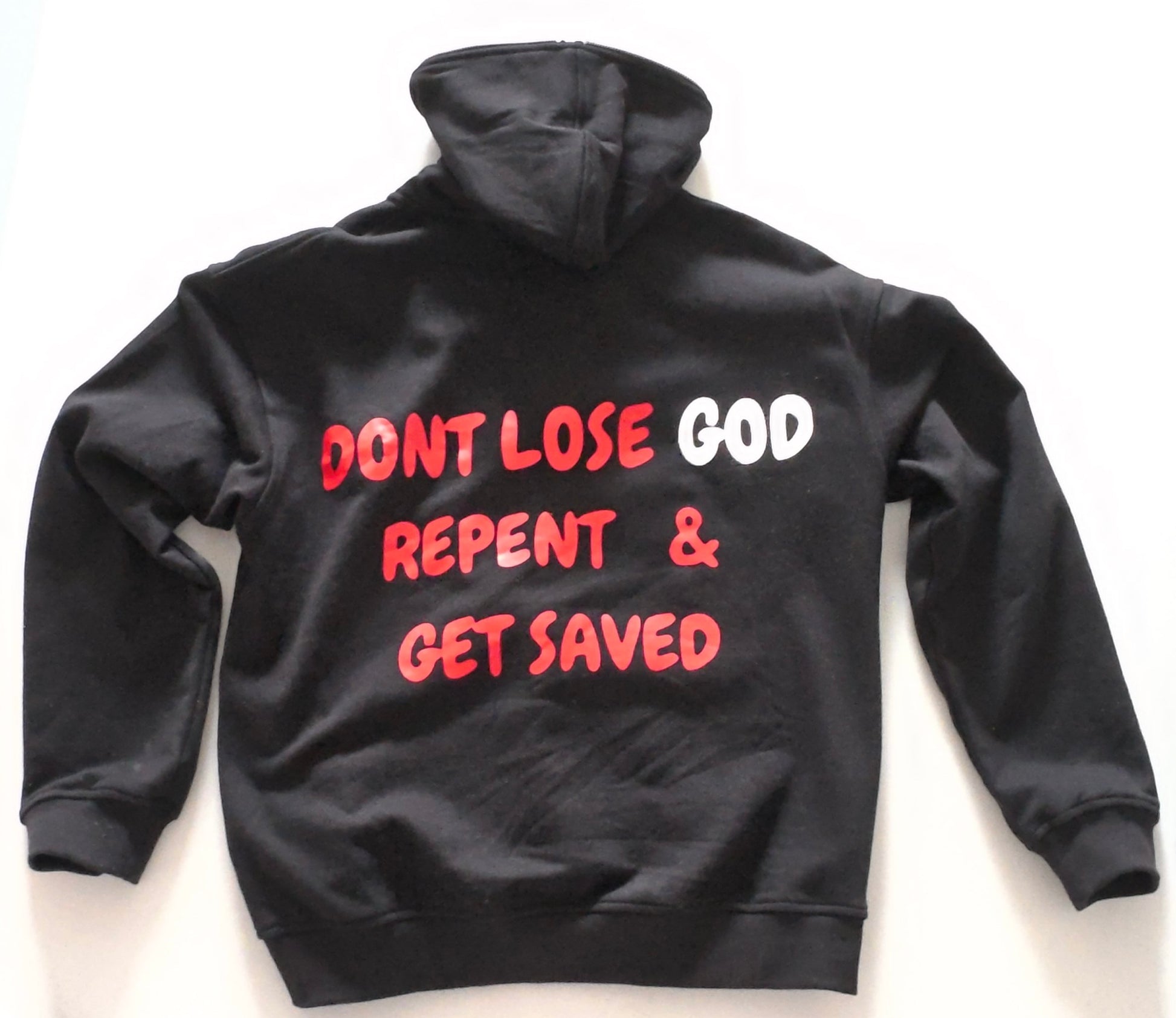 Our full zip up jacket gives a great reminder to those whose looking at this jacket to never lose God, repent and get saved!!